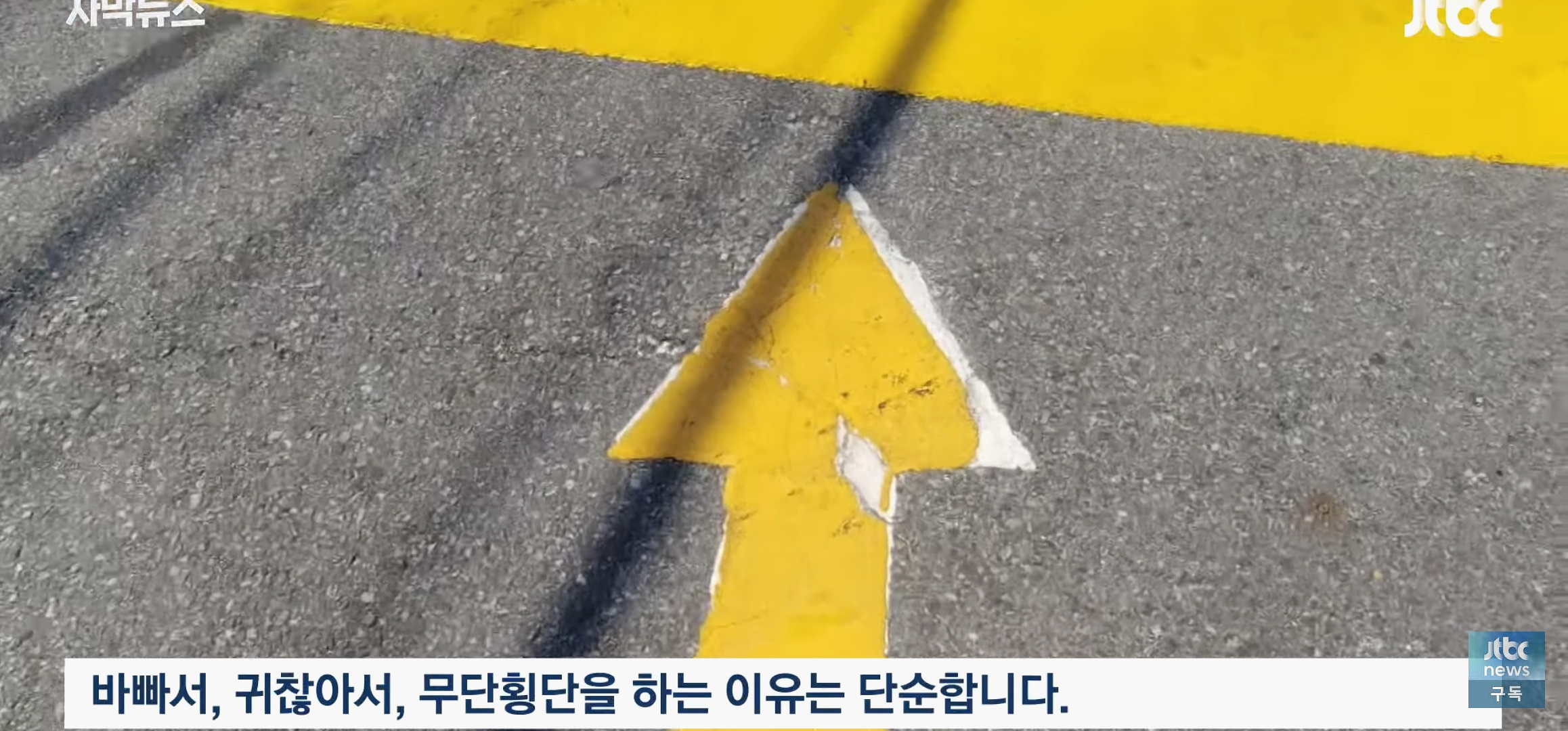 - 무단횡단이 잦은 이유로 빨리빨리 문화, 무관심 등이 지적되었습니다.